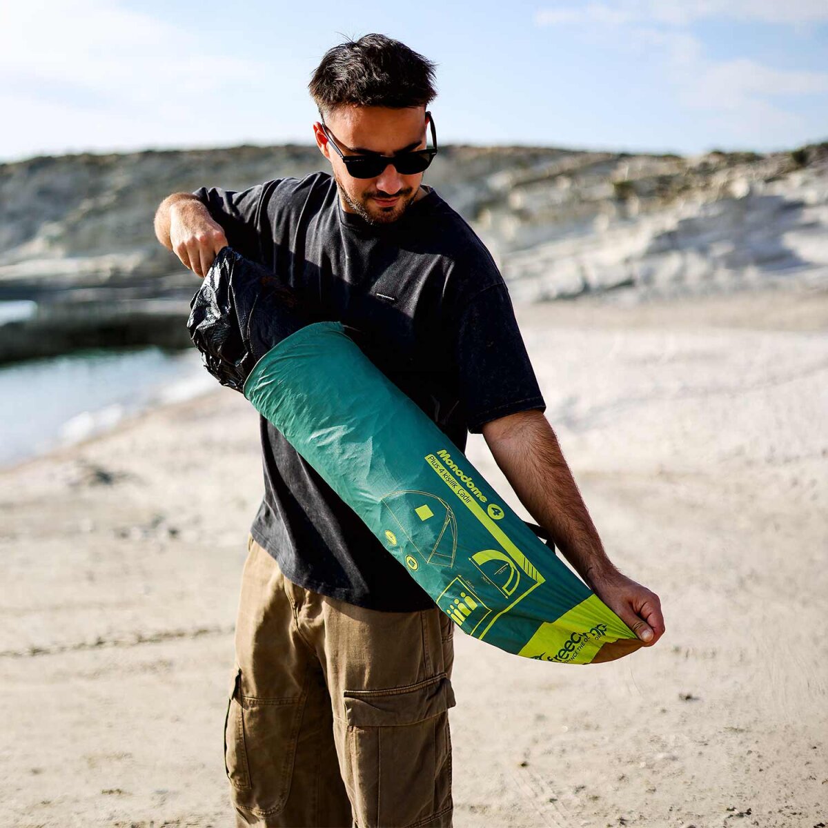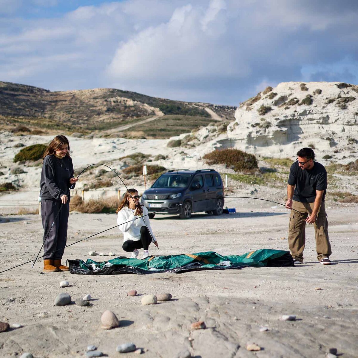 Çadırın PE tabanı alta gelecek şekilde gergince yere serin.