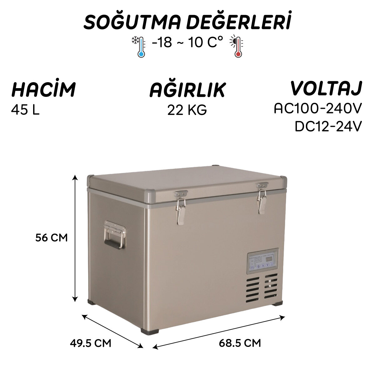 • Dış ölçüler: 68.5 x 49.5 x 56 cm