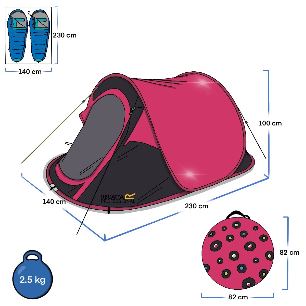 Regatta Malawi 2 Kişilik Pop-Up Çadır-PEMBE