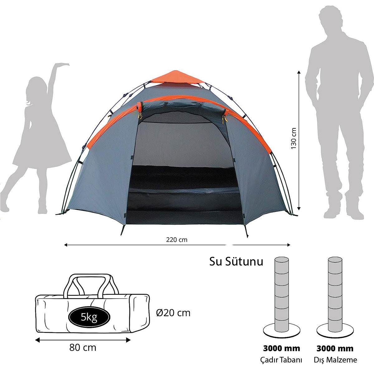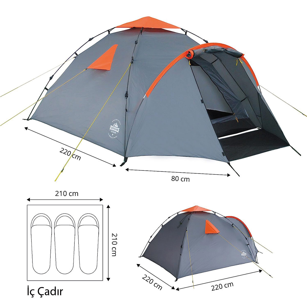 Where Tomorrow Family Otomatik Çadır Lumaland 3 Kişilik Aile Çadırı ile Kamp, yürüyüş, trekking, geziler ve akla gelebilecek her türlü Outdoor aktivitesi için ideal. Etkili güneş koruması, yağmur koruması, rüzgar koruması ve uçan kum koruması özellikleri ile öne çıkıyor. Montajı kolay, hafif ve sağlam. Marka: Where Tomorrow Model: Family Çadır Kurulumu: Otomatik kurulum En: 220 cm Boy: 220+80 cm Yükseklik: 130 cm Kapı Bilgisi: 1 kapı Bagaj: Bagaj Özelliği Bulunmamaktadır. Kapalı Ölçüsü: 18 x 85 cm Ağırlık: 5000g Kişi Sayısı: 3 Kişilik Oda Sayısı: 1 Oda Mevsim: 4 Mevsim Kumaş Tipi: 190T PU3000mm dikiş bantlı, Taban Kumaşı: 115G PE mat Pole: 8.5 mm FG Direği, 3 bölüm, UT sistemi, Göbek II Detaylar: Kurulum: Kapatma: İşte bu kadar!