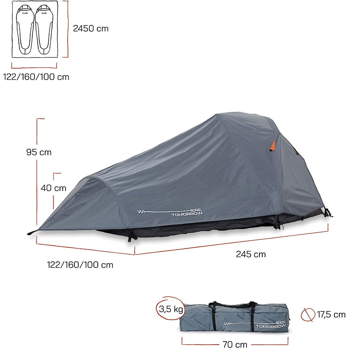 Where Tomorrow Kompakt Otomatik Çadır 2 kişilik Tomorrow trekking çadırı: Son derece kullanışlı, ultra hafif ve iyi taşınabilir. Marka: WHERE TOMORROW Model: Kompakt Çadır Kurulumu: Otomatik kurulum En: 120/160/100 cm Boy: 245 cm Yükseklik: 95/40 cm Kapı Bilgisi: 1 kapı Bagaj: Bagaj Özelliği Bulunmamaktadır. Kapalı Ölçüsü: 16.5 x 68 cm Ağırlık: 3000g Kişi Sayısı: 2 Kişilik Oda Sayısı: 1 Oda Mevsim: 4 Mevsim Kumaş Tipi: 190T polyester PU1500mm Taban Kumaşı: 115G PE mat Detaylar: Kurulum: Kapatma: